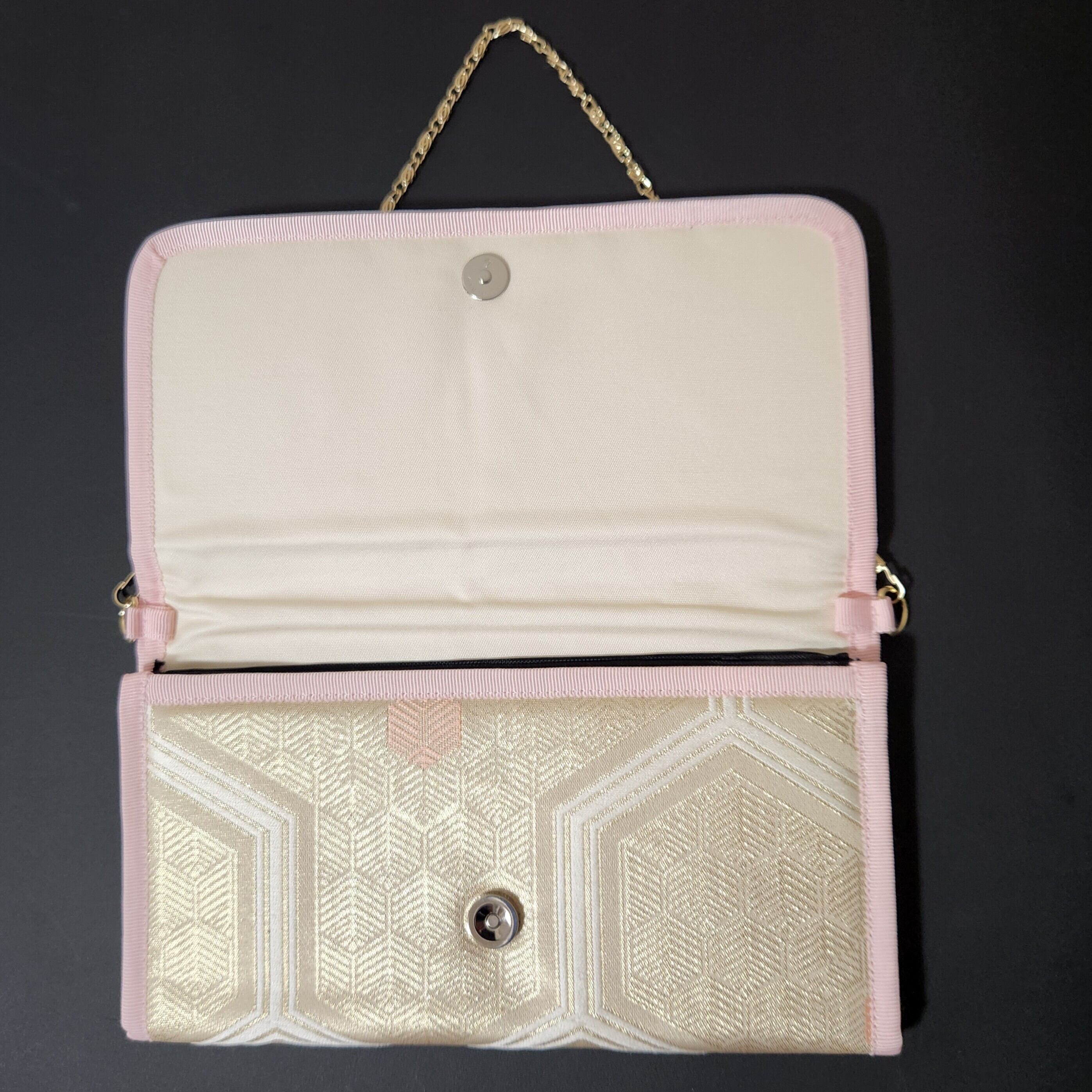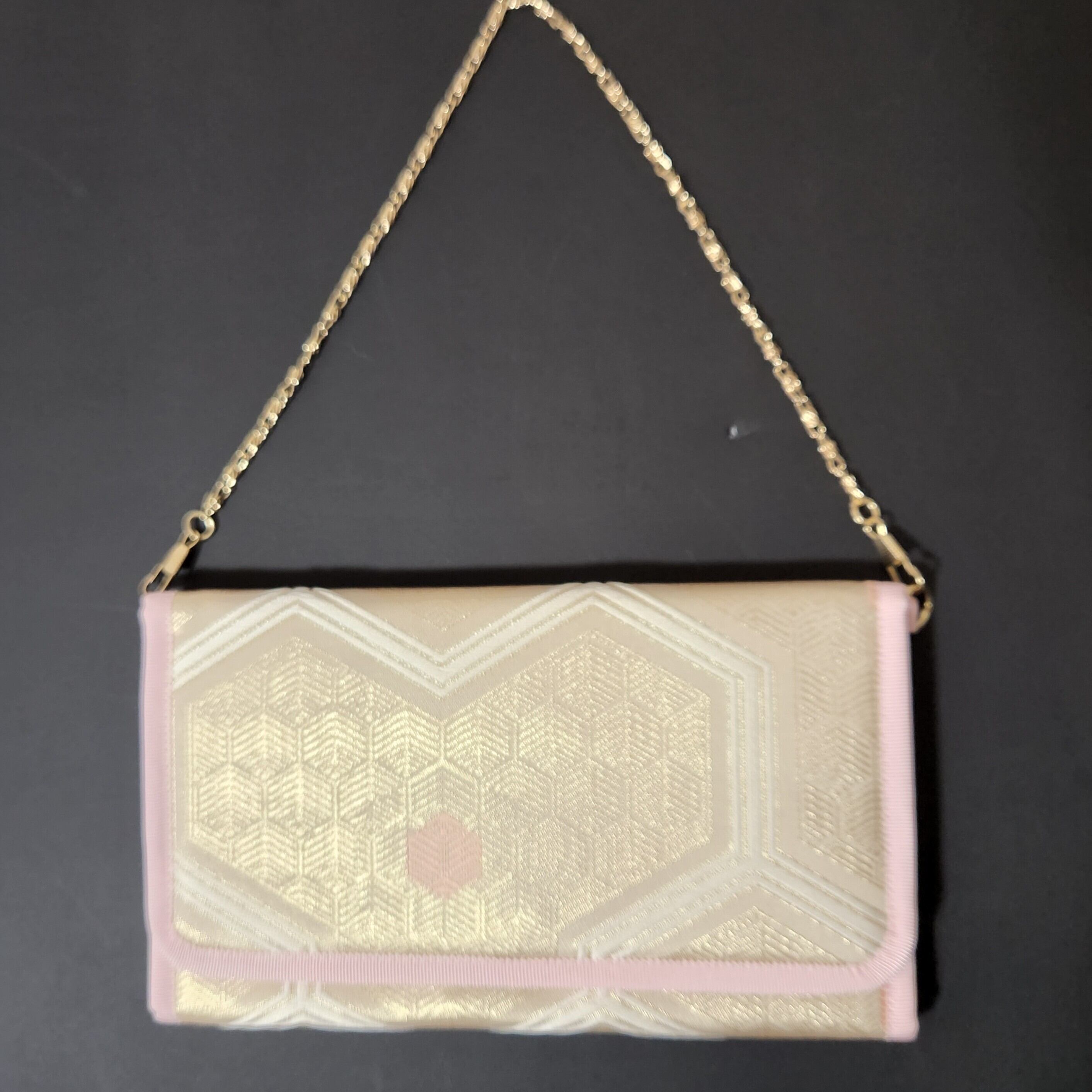 又、お祝い袋が入るサイズにしていますので、ふくさのようにお使い頂いたり、短いチェーンが付いていますのでパーティーにお使い頂いたり大切なシーンで是非ともお使いください。